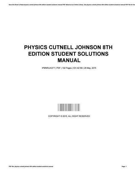 Read Online physics cutnell and johnson 8th edition solution manual free Kindle Editon By Click Button. physics cutnell and johnson 8th edition solution manual free it’s easy to recommend a new book category such as Novel, journal, comic, magazin, ect. You see it and you just know that the designer is also an author and understands the challenges involved with having a good book. You can easy klick for detailing book and you can read it online, even you can download it